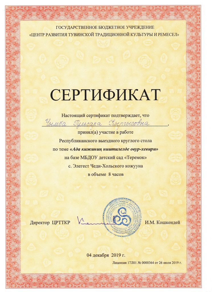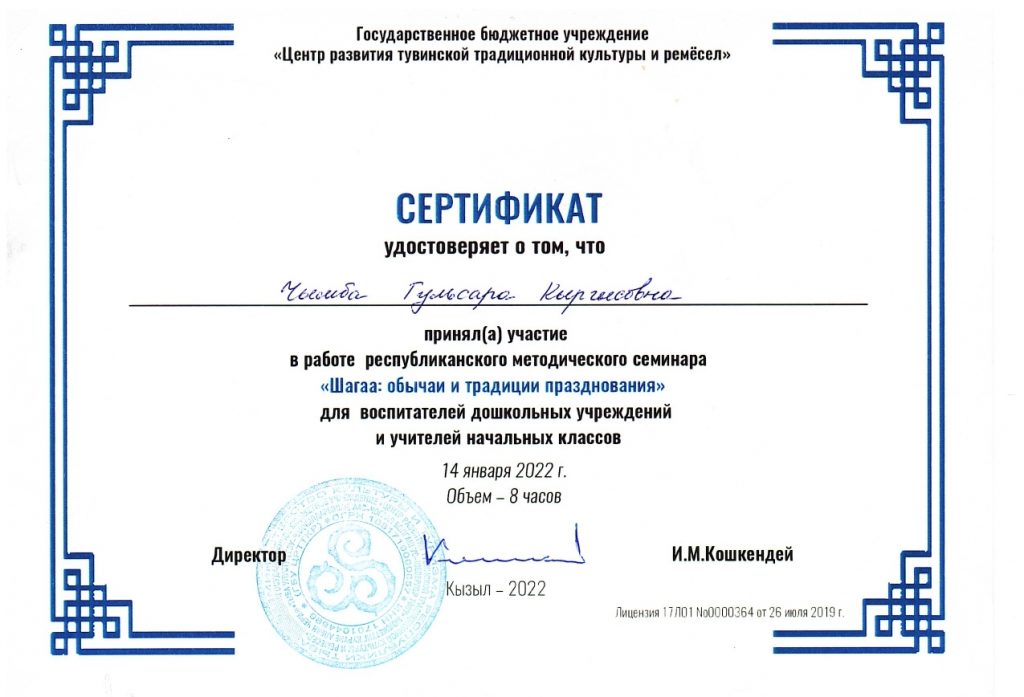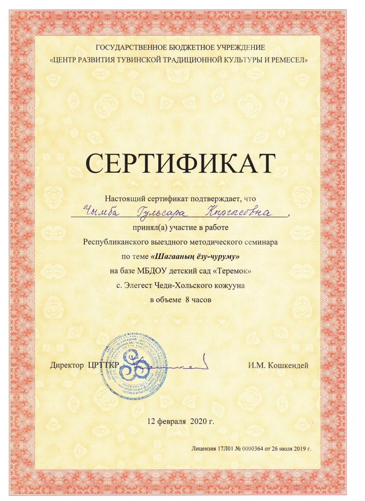 8. Мастер-класс Хуулгаазын шол «Сутен кылган тыва чемнер»