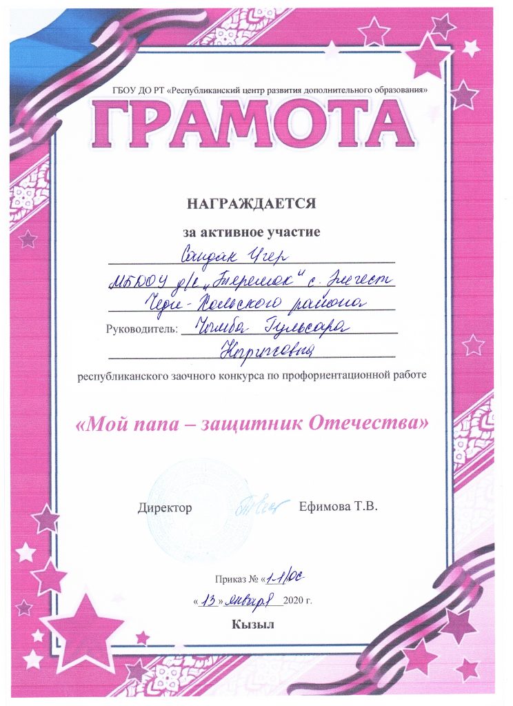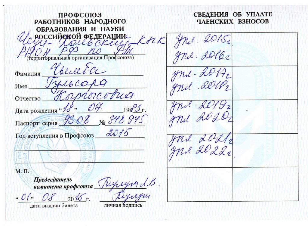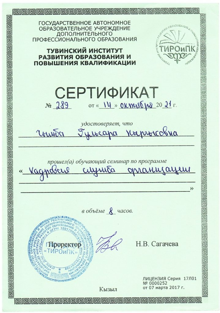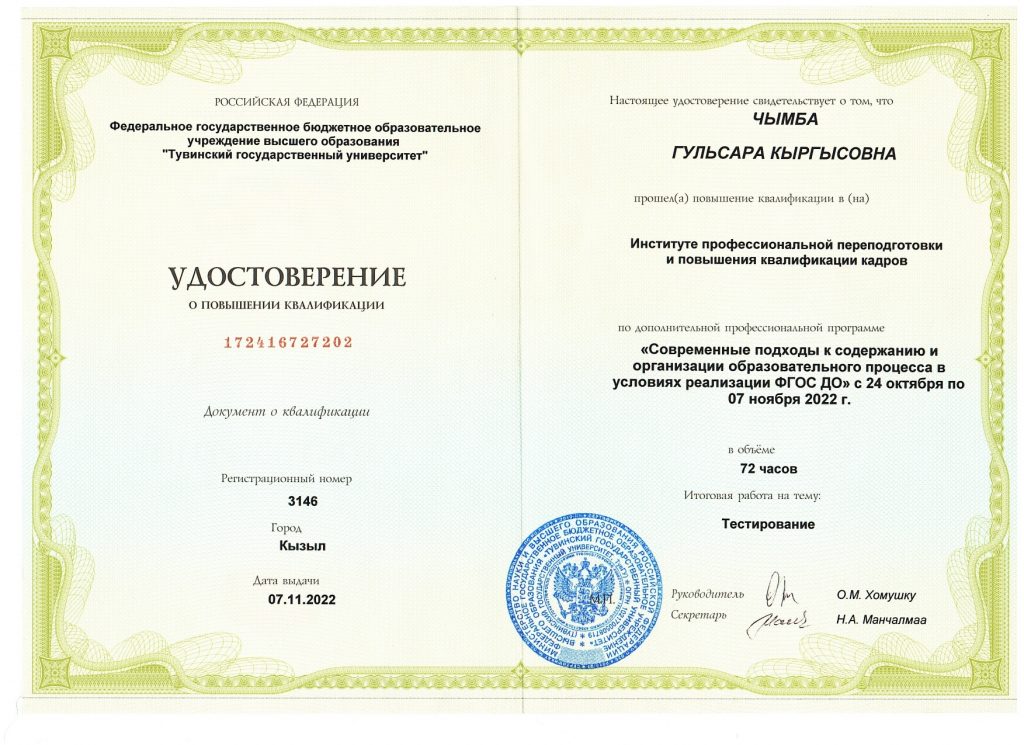 | 1 | Фамилия Имя Отчество | Чымба Гульсара Кыргысовна |