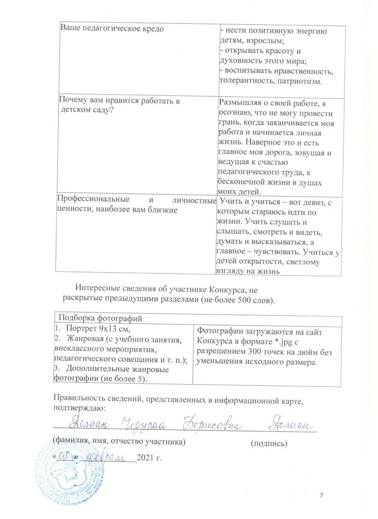 | 8 | Сайт педагога | https://nsportal.ru/choduraa-borisovna-dolaan |