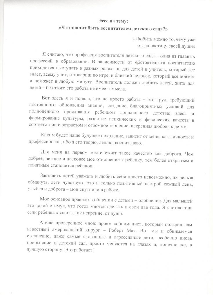 Эссе «Что значит быть воспитателем детского сада?»