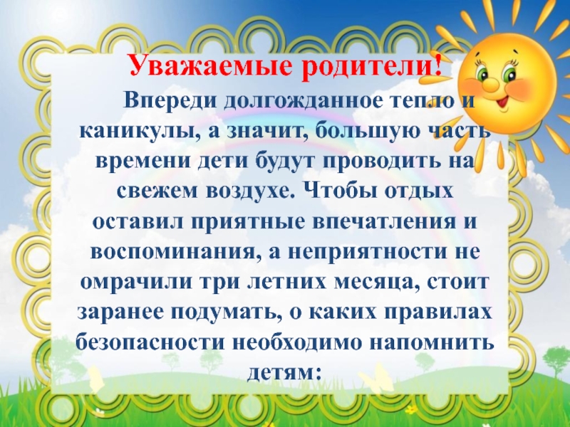 Консультация для родителей «Безопасное лето!»